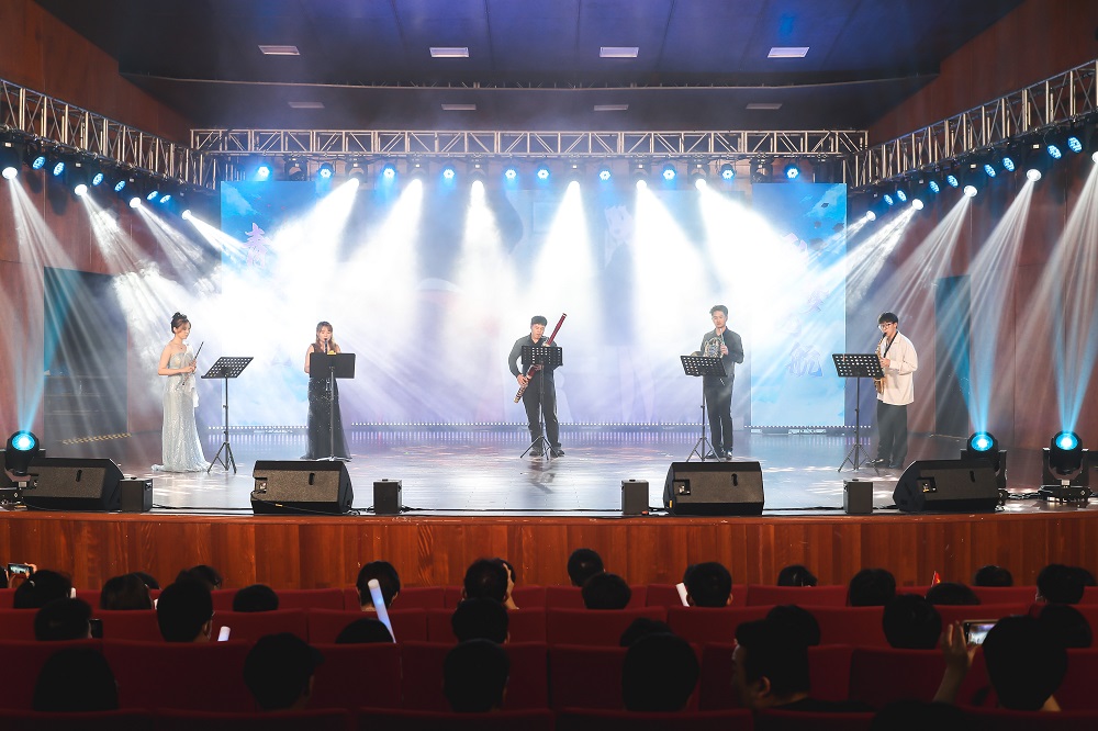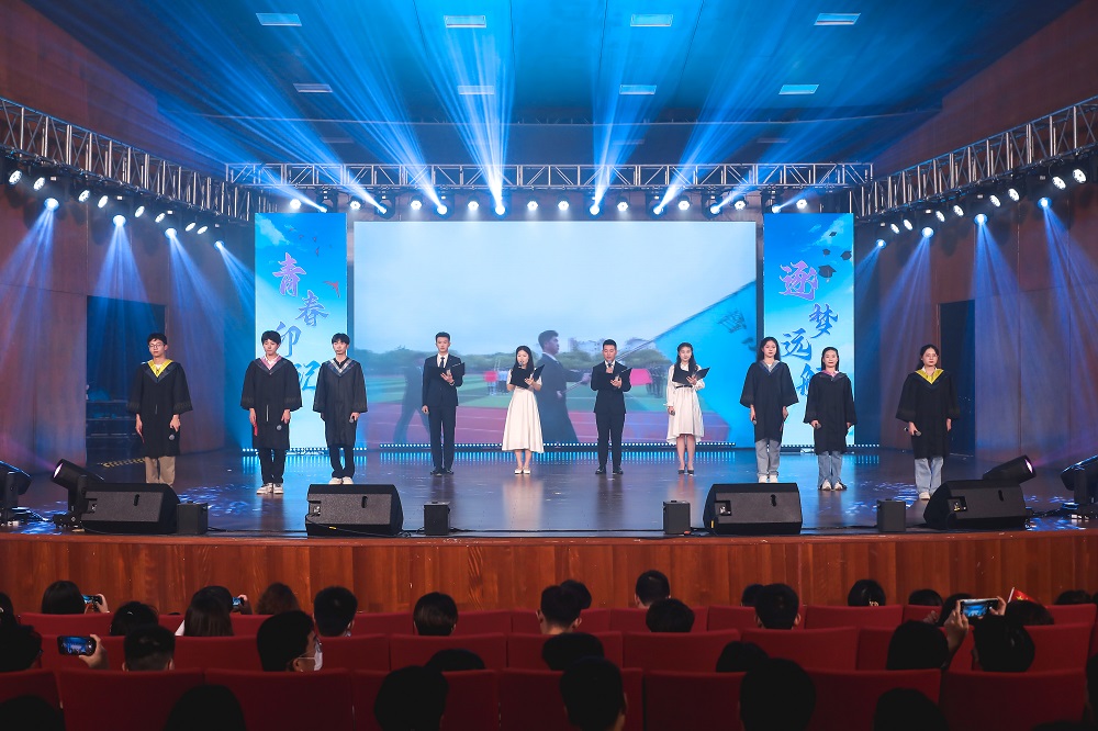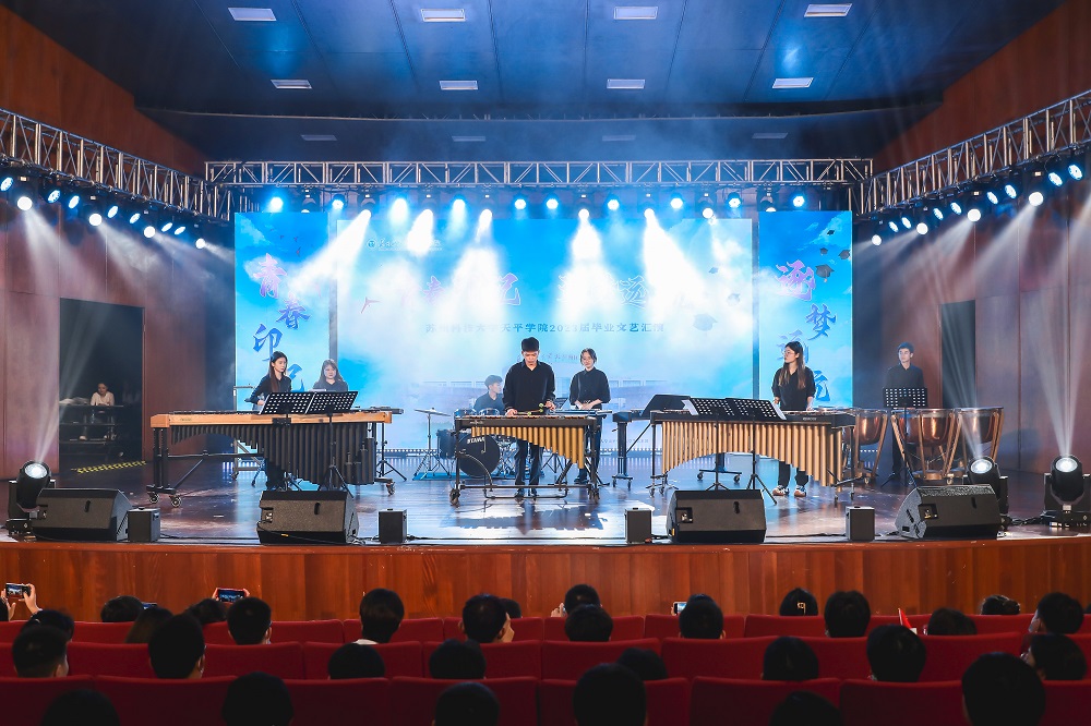 晚会分为“筑梦天平·再回首”“待续华章·铭初心”“踏歌远航·续新帆”三个篇章,节目类型涵盖打击乐、木管五重奏、歌曲、舞蹈、朗诵等多种形式。文艺汇演伊始,孙景书记致辞,他对到场嘉宾表达了诚挚的感谢,他深情地回忆了2023届毕业生在母校中的点滴,并为毕业生送上了美好的祝愿。