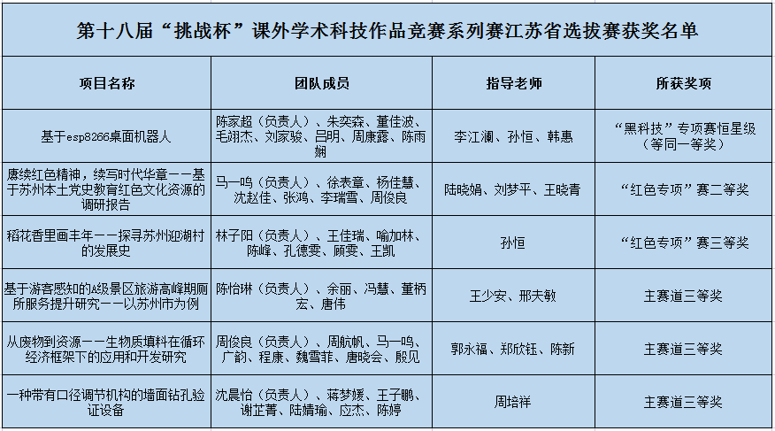 近日,第十八届“挑战杯”全国大学生课外学术科技作品竞赛“红色专项”赛江苏省选拔赛结果公布。taptap师生齐心合力,勇于拼搏,荣获主赛道三等奖3项、“黑科技”专项赛“恒星级”1项(等同一等奖)、“红色专项”赛二等奖1项、三等奖1项,创造了taptap在该项比赛中历史最佳成绩。