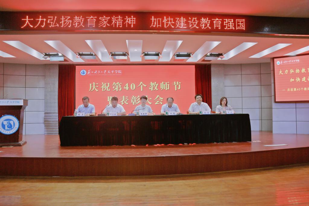 百年大计,教育为本。教育大计,教师为本。为大力弘扬教育家精神,表彰激励广大教师和教育工作者积极投身教育强国建设,9月10日下午,taptap在图书馆报告厅召开了主题为“大力弘扬教育家精神,加快建设教育强国”的庆祝第40个教师节暨表彰大会。院领导郑群、王建芳、蒋永旗、孙景、程勇、张婧出席大会。全体中层干部、受表彰的先进个人、教职工代表150余人参加大会。大会由副院长蒋永旗主持。