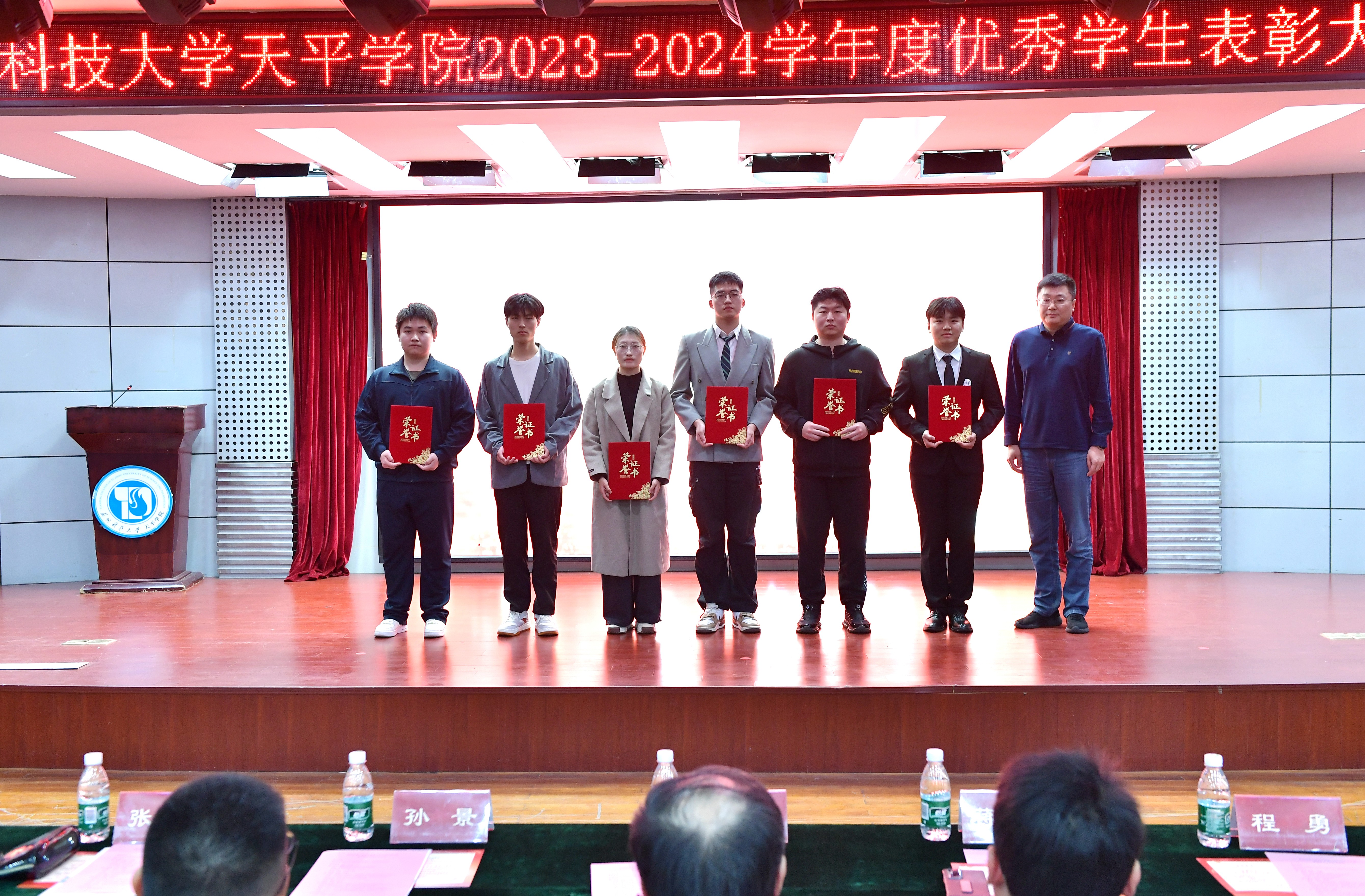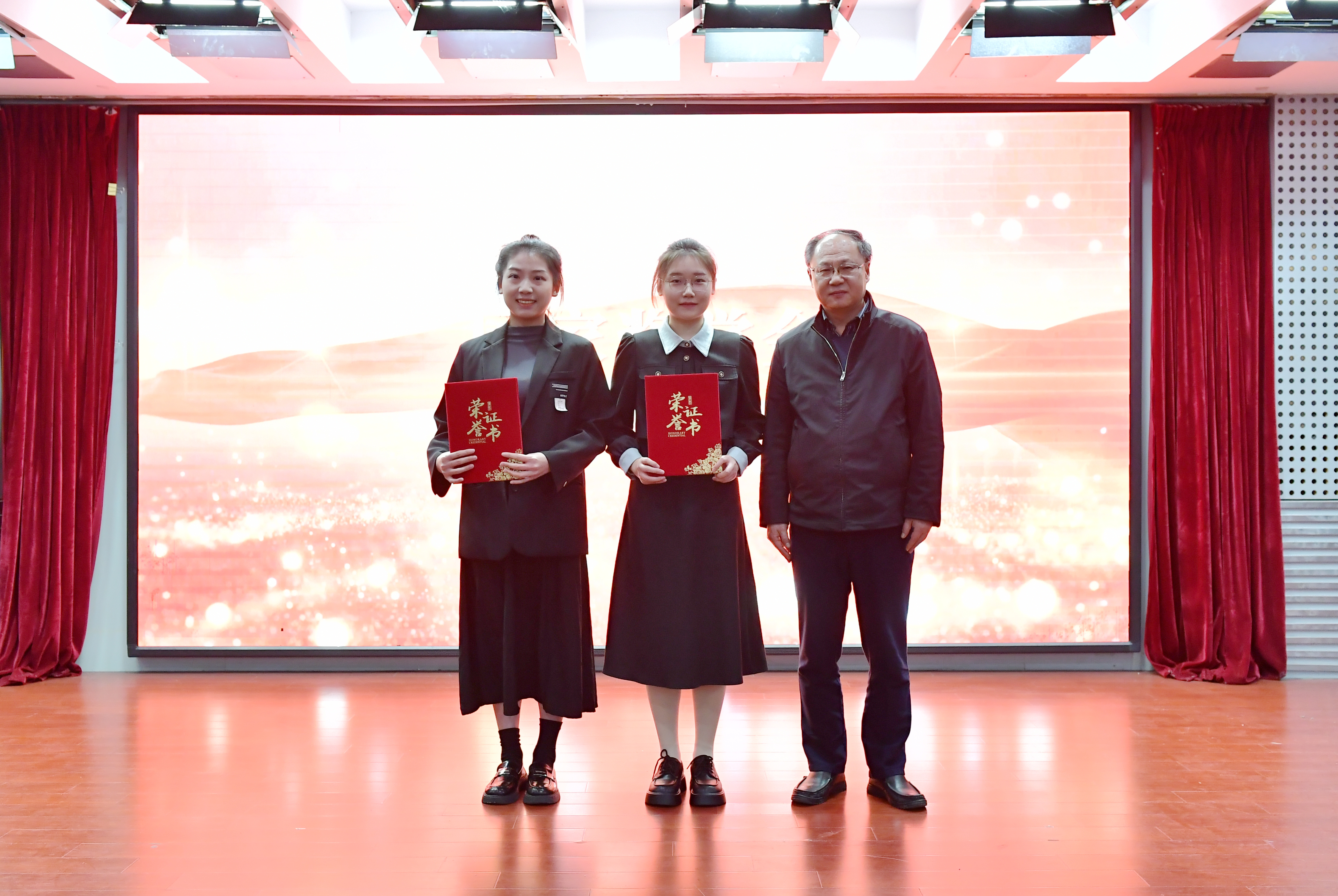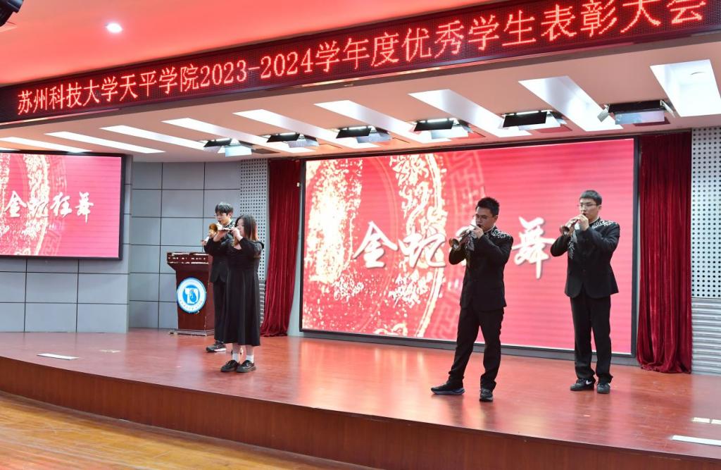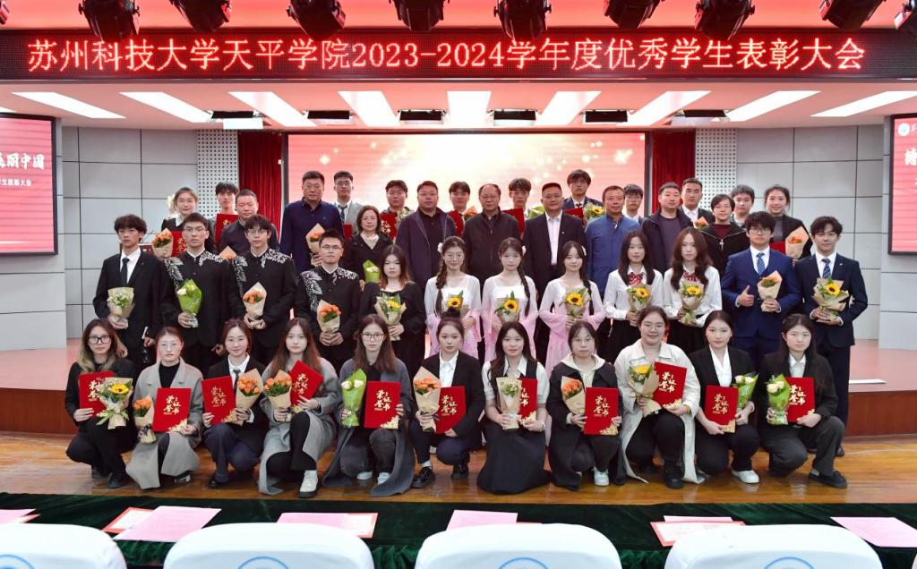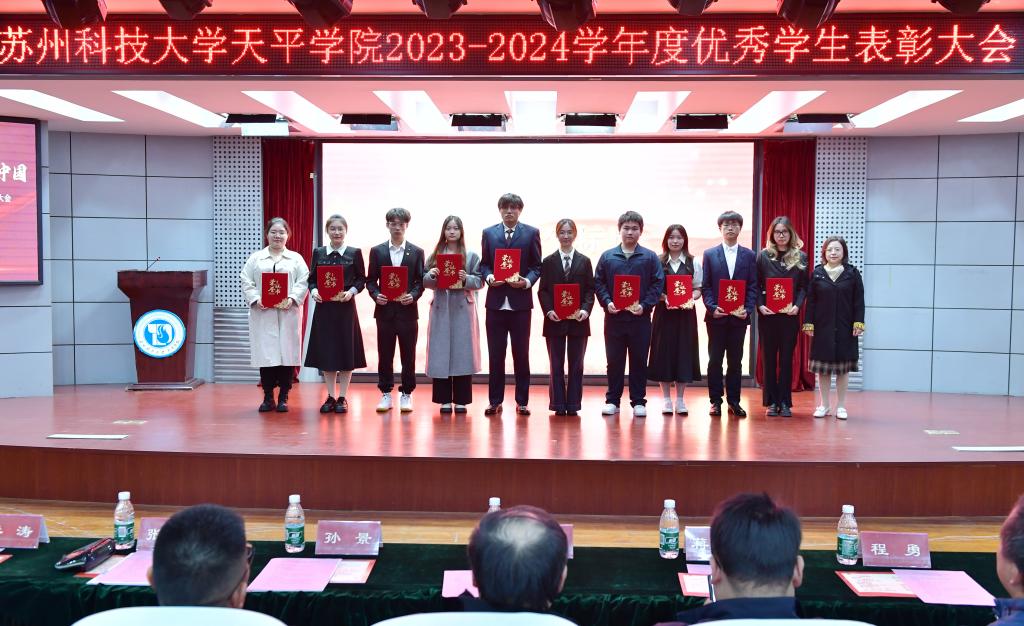 与会领导分别为获得国家奖学金、江苏省三好学生、江苏省优秀学生干部、江苏省先进班集体、院年度人物、院三好学生标兵、院先进集体等学生代表颁奖。