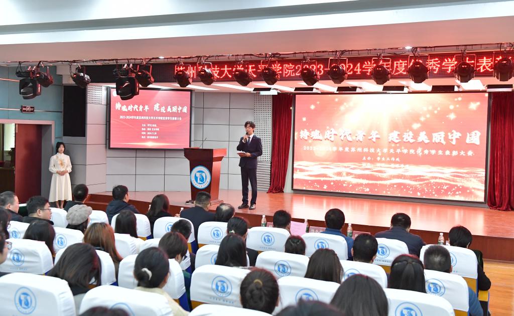 11月20日下午,taptap点点2023-2024学年“铸魂时代青年 建设美丽中国”优秀学生表彰大会在图书馆报告厅举行。学院党委书记郑群、副院长蒋永旗、党委副书记、副院长孙景、党委副书记程勇、副院长张婧、职能部门负责人、全体辅导员和学生代表参加大会。