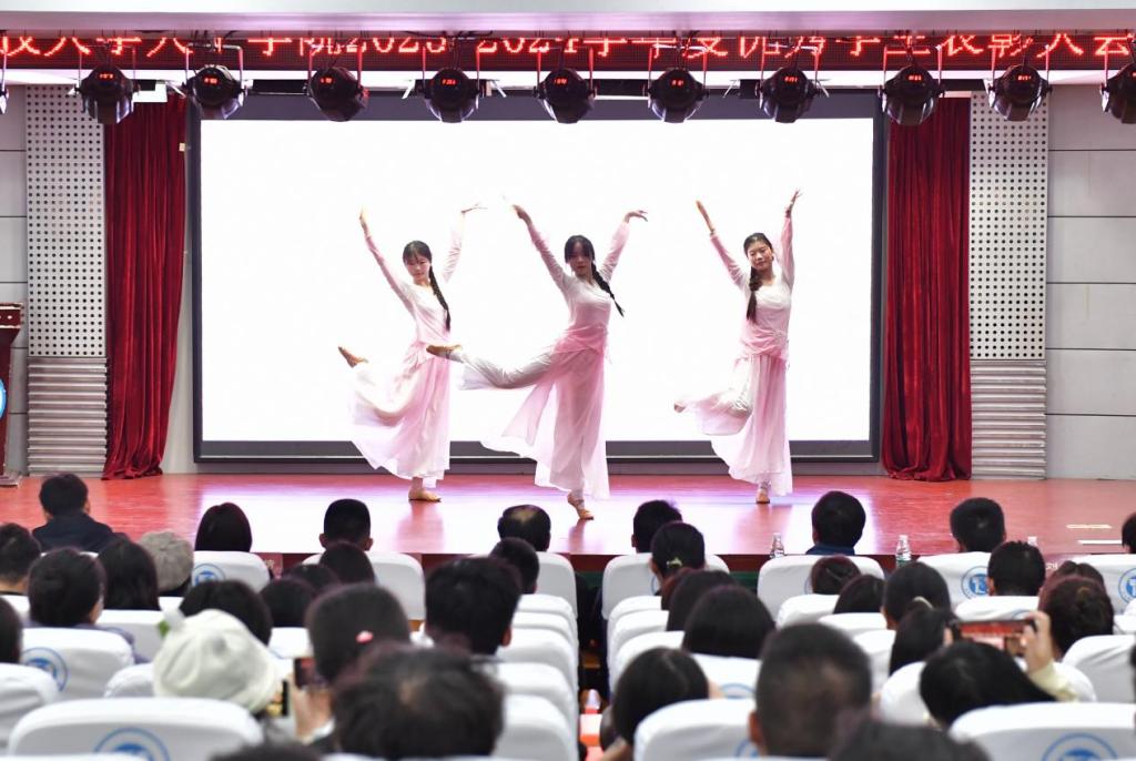 艺术学院、大学生艺术团带来了器乐合奏《金蛇狂舞》、舞蹈《浮光》、朗诵《青春》等节目表演,创造了热情洋溢的现场环境,鼓舞着所有同学勇往直前、积极进取。