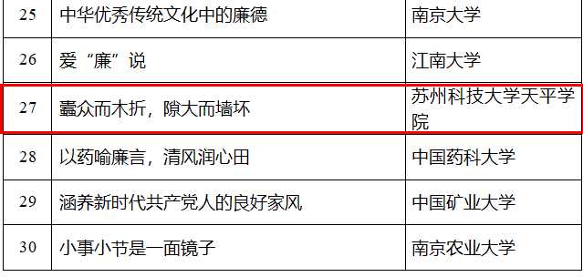 近日,教育部办公厅公布了第九届高校廉洁教育系列活动结果,taptap成功入选两项名单,taptap微课作品《蠹众而木折,隙大而墙坏》成功入选第九届高校廉洁教育系列活动“一校一金句”网络微课遴选名单(为全国唯一一所入选的独立学院),谢林蓓老师成功入选第九届高校廉洁教育系列活动知识问答优秀学员名单。