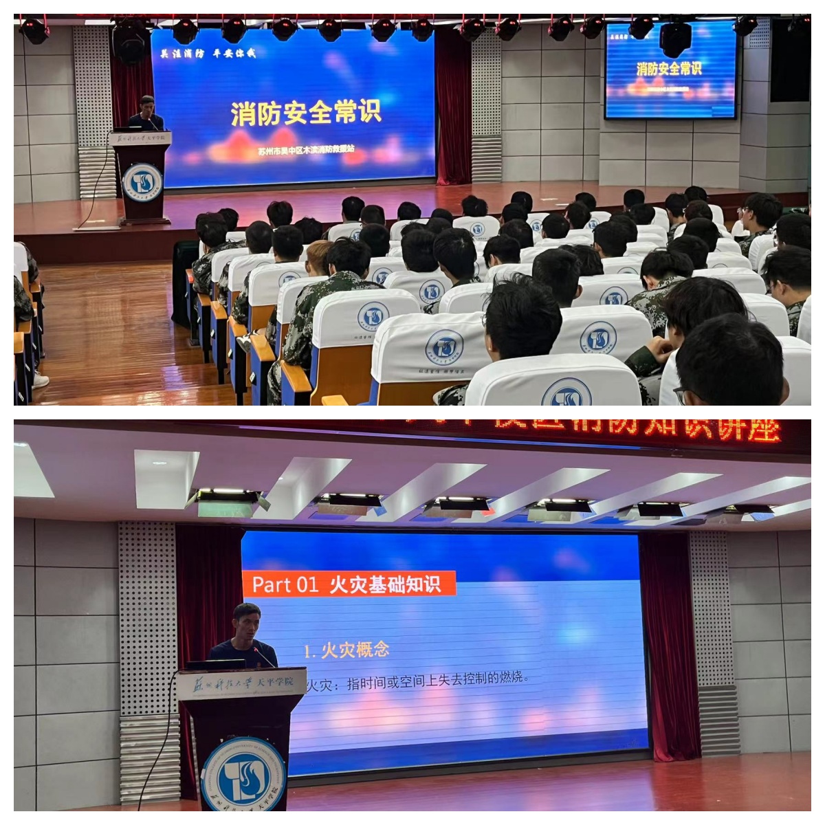 9月23日,学院在天平校区图书馆和运动场组织开展了2024级新生消防安全知识宣传暨灭火演练活动。此次活动邀请了苏州市吴中区木渎消防救援站官兵现场指导,各二级学院新生代表参加了活动。