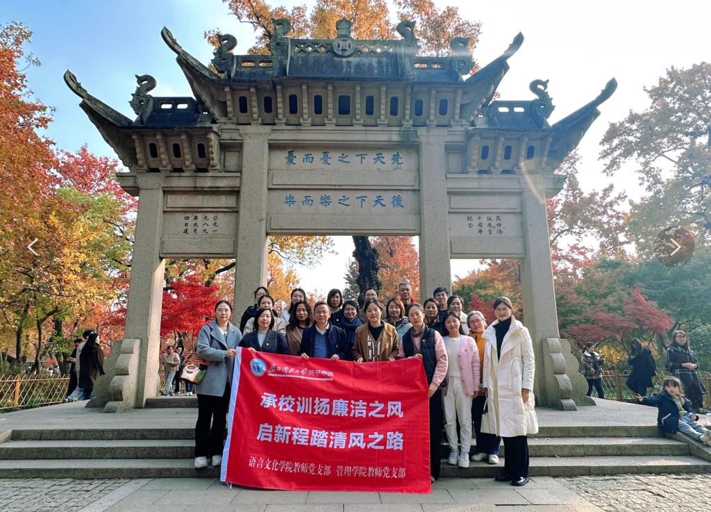 12月6日下午,为深入学习党的二十届三中全会精神,贯彻《关于加强新时代廉洁文化建设的意见》文件精神,结合taptap第六届“廉洁文化建设月”的要求,语言文化学院和管理学院教师党支部联合组织开展了以“承校训扬廉洁之风,启新程踏清风之路”为主题的教师党员党风廉政、爱国主义教育活动。