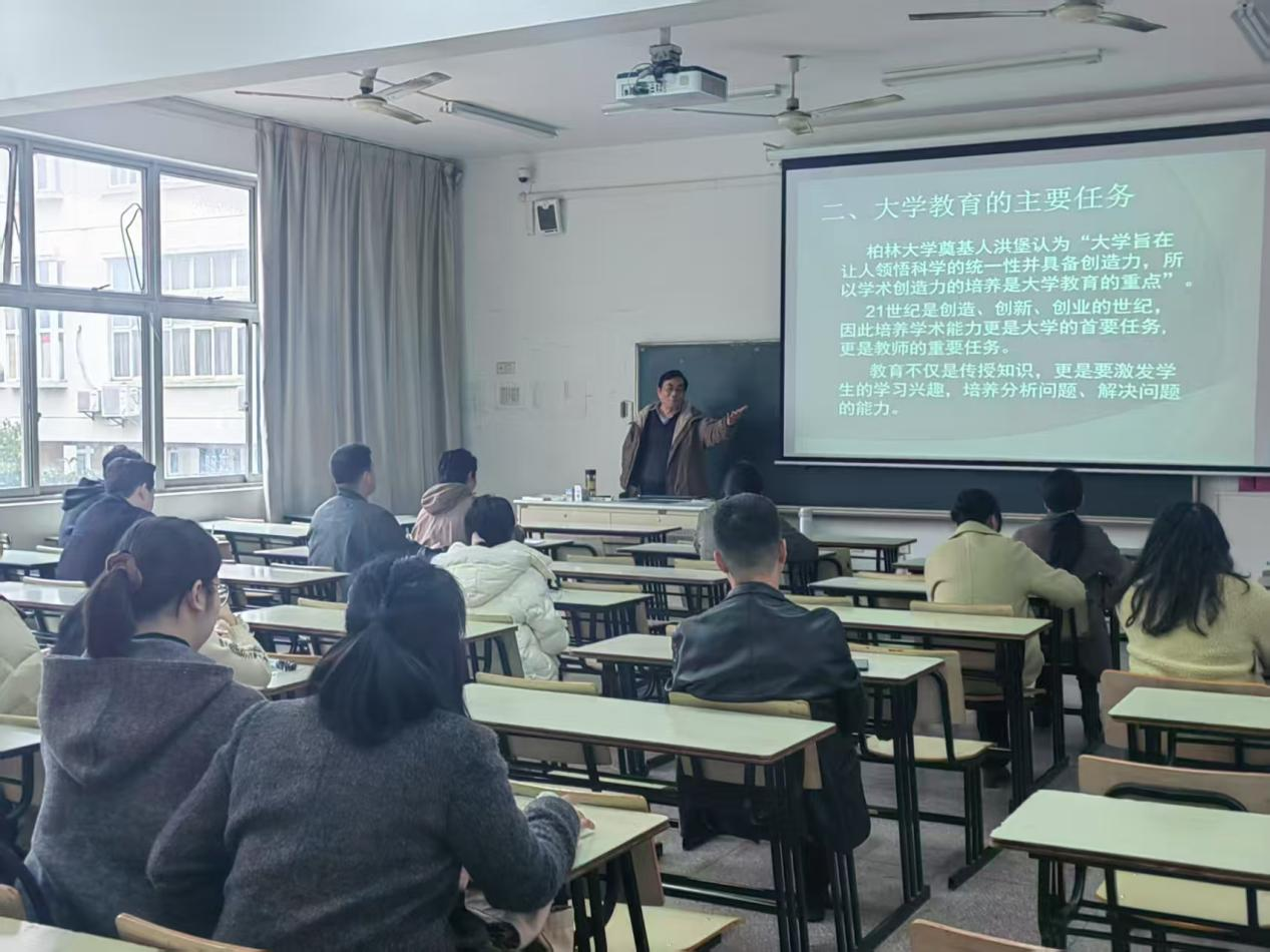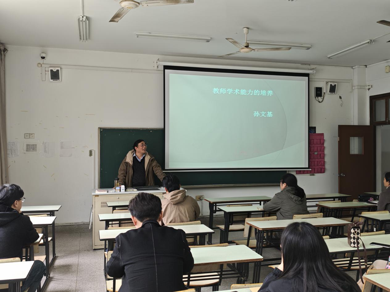 讲座中,孙文基院长从教学与科研两大核心维度展开论述。教学能力提升方面,他提出教师需打破课程固有框架,通过“逻辑重构”深挖知识点内在关联,并融入跨学科知识拓展课堂广度;科研能力建设方面,他建议以实际问题为导向,结合区域发展需求创新研究方法,推动学术成果落地转化。此外,他特别强调“教学相长”理念,鼓励教师在培养学生过程中同步提升自身学术能力。