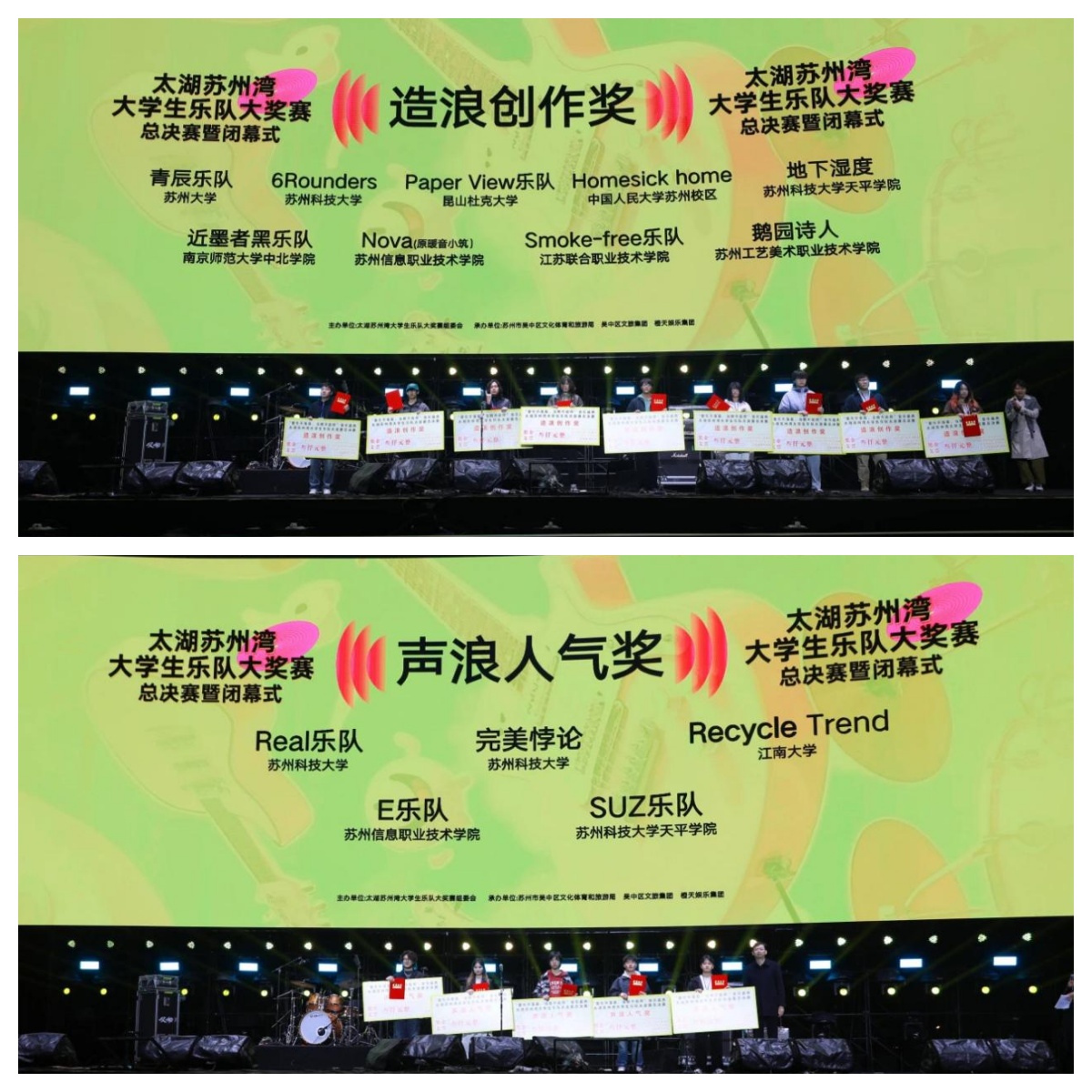 此次大赛历时五个月,经过与近六十支大学生乐队的激烈角逐,taptap地下湿度乐队与SUZ乐队分别荣获“造浪创作奖”和“声浪人气奖”。