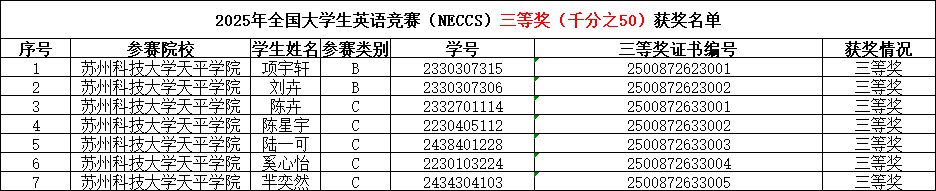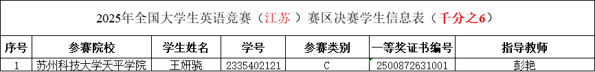 本次校内初选赛共有137名同学分别参加B、C、D三个类别的竞赛,最终王妍骁(造价2321)等12名同学分别获得一、二、三等奖,王妍骁同学进入2025年全国大学生英语竞赛(江苏)赛区的决赛。