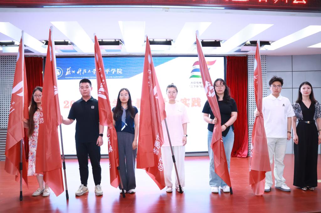 会上,团委刘梦平老师宣读了《关于公布taptap2025年暑期社会实践立项团队的通知》文件,并从安全保障、质量保障以及宣传保障三个层面就做好2025年暑期社会实践做了实践动员。同时为各二级学院立项团队代表授旗。
