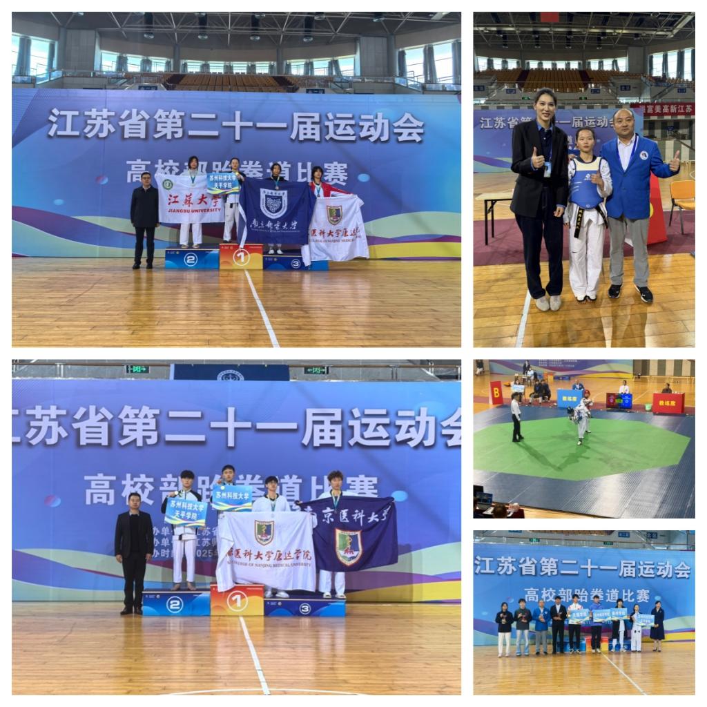 11月5日至10日,由江苏省教育厅与江苏省体育局主办、江苏省学生体育协会协办、江苏师范大学承办的江苏省第二十一届运动会高校部跆拳道比赛圆满落幕。本次比赛吸引了来自南京大学、东南大学、苏州大学、南京航空航天大学、taptap点点等81所高校的555名运动员参赛,参赛规模和水平均为历史之最,我校代表队派出3位运动员,经过激烈的对抗,土木工程学院罗羽萱同学获得甲B女子-55kg级金牌,智能制造学院张昌岚同学获甲B男子-72kg级银牌,管理学院刘思源同学获得男子+80kg级第五名,最终在甲B组33所本科院校中排名团体总分第七名的好成绩,教练员周小林老师获得“体育道德风尚奖”,张昌岚同学获“优秀运动员”称号。