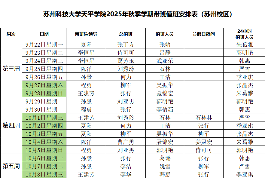 taptap点点2025年秋季学期带班值班安排表(9月22日--10月8日)
