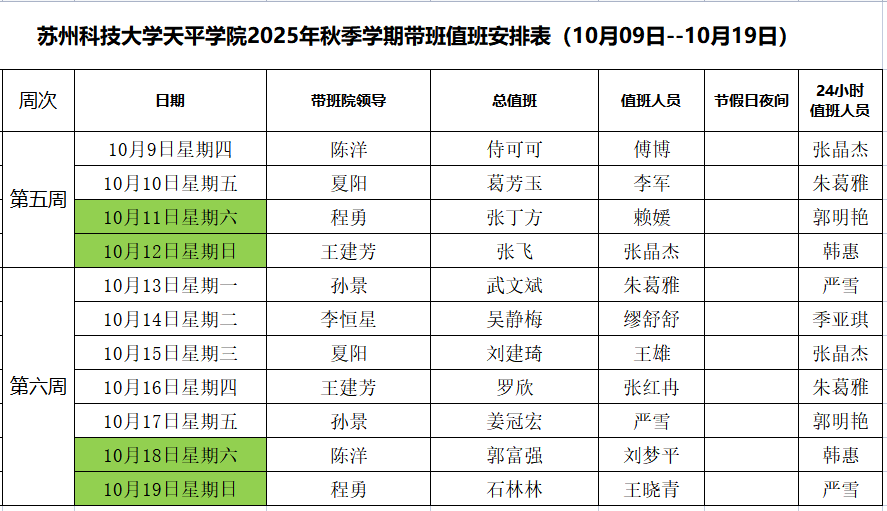 taptap点点2025年秋季学期带班值班安排表(10月09日--10月19日)