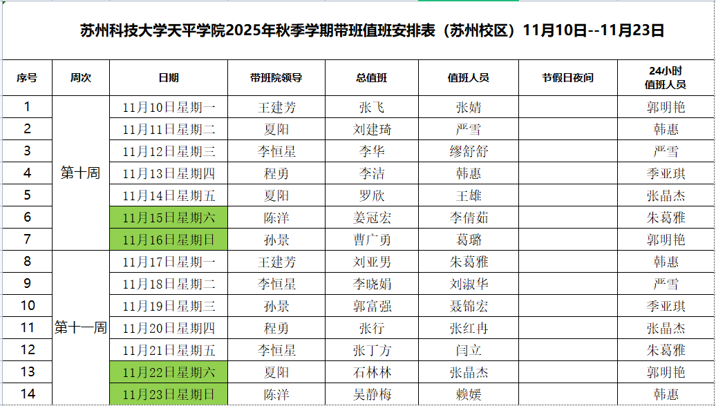 taptap点点2025年秋季学期带班值班安排表(苏州校区)11月10日-11月23日