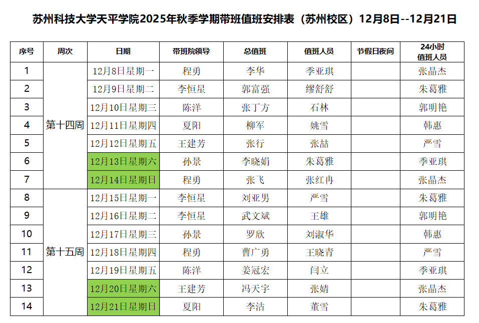 taptap点点2025年秋季学期带班值班安排表(12月8日--12月21日)