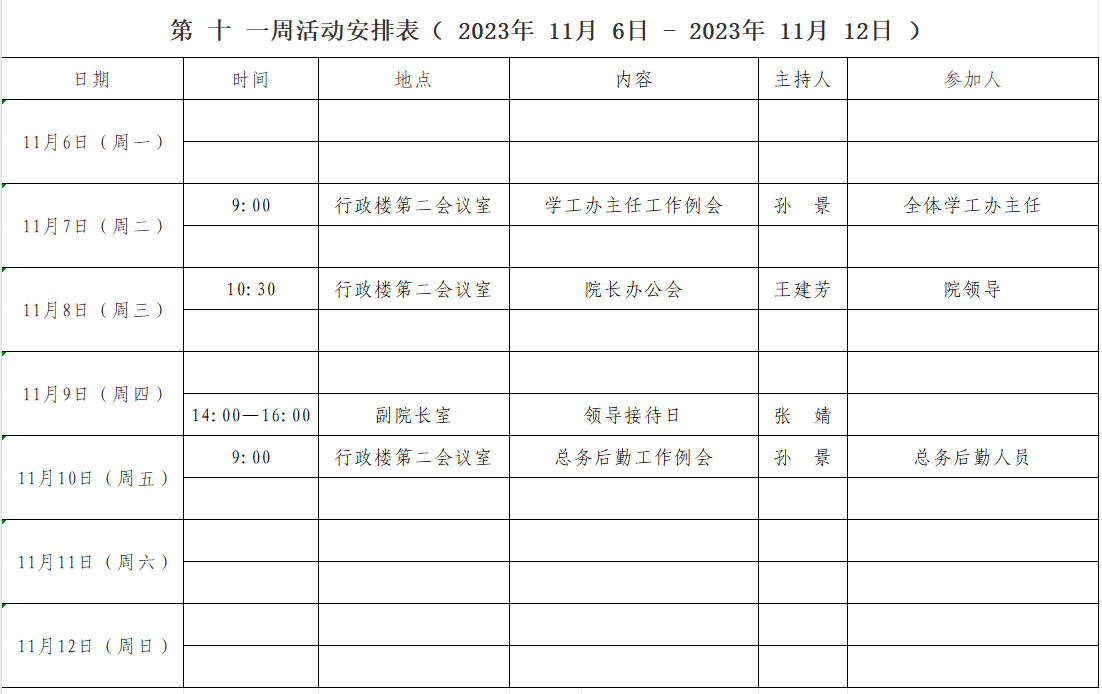 第 十一 周活动安排表( 2023年 11月6日 - 2023年 11月 12日 )