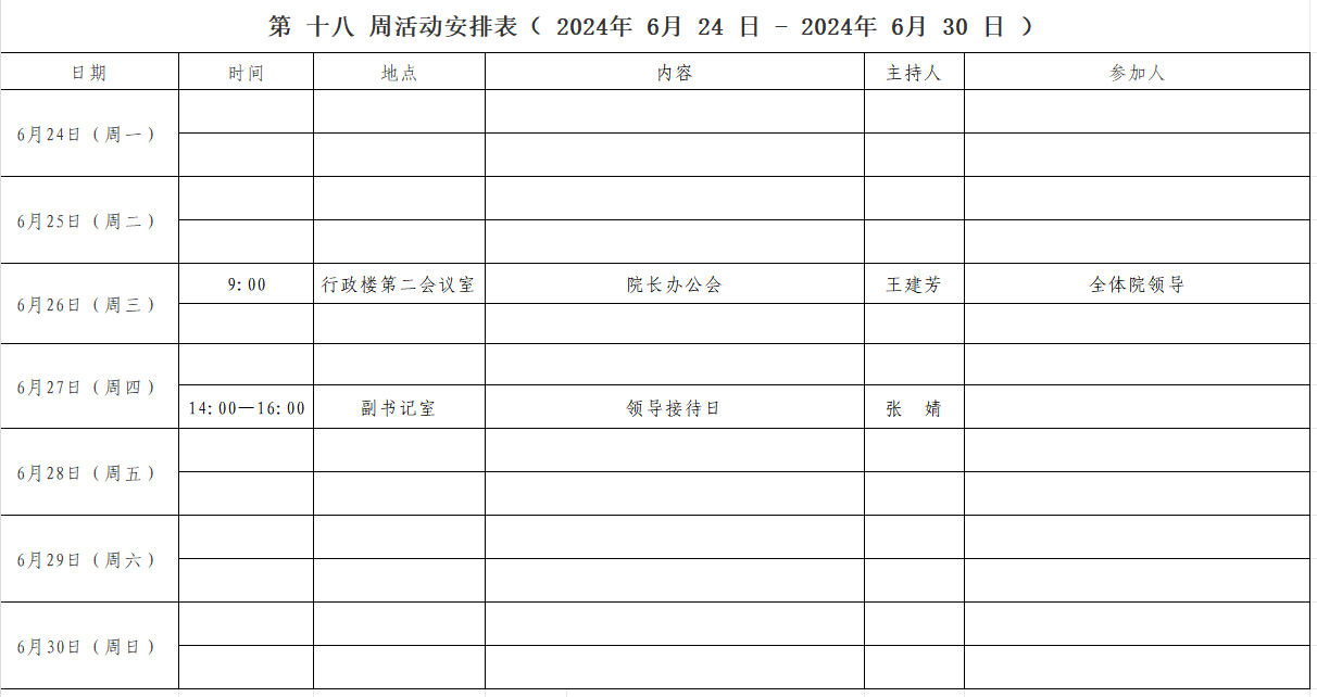 第 十八 周活动安排表( 2024年 6 月 24 日 - 2024年 6 月 30 日 )