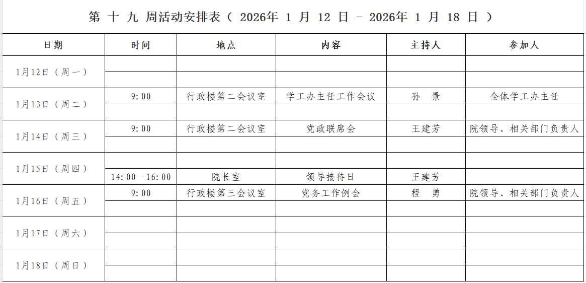 第 十九 周活动安排表( 2026 年1 月 12 日 - 2026 年 1月18日 )