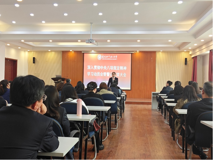 4月30日,必赢76net线路官网党委召开深入贯彻中央八项规定精神学习动员会暨警示教育大会。会议由学院党委书记高丹主持。