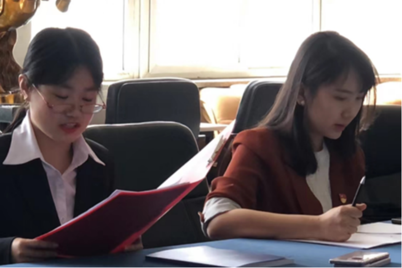教工党支部书记祁宁、朱恒峰,学生党支部书记刘美妍、王一涵分别结合工作交流发言。