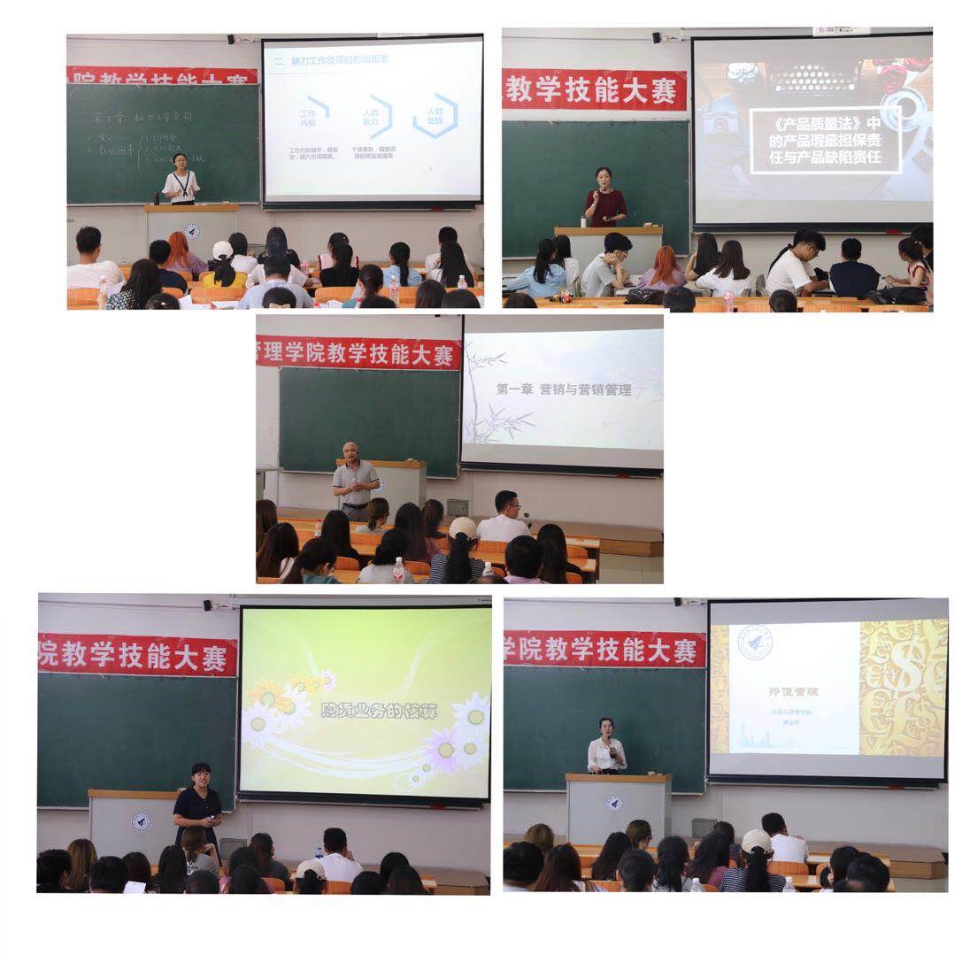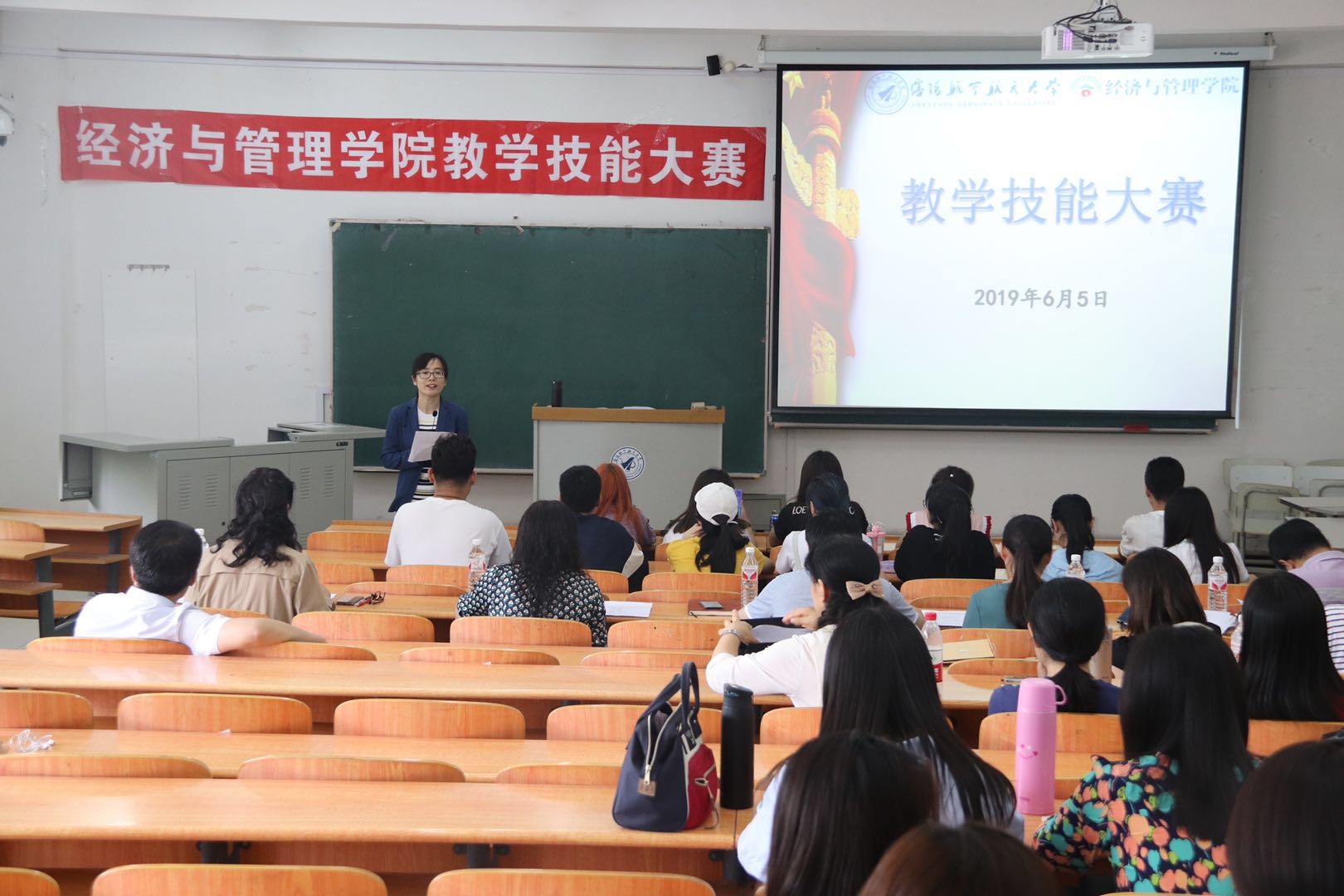 教学技能大赛由校教学质量评估处高丹副处长,校教学名师、自动化学院卢艳军老师,经管学院党委书记吴景泰老师,校教学督导、经管学院赵庆国老师,省教学名师、经管学院金树颖老师担任评委。经管学院领导班子及教师现场观摩教学技能大赛。
