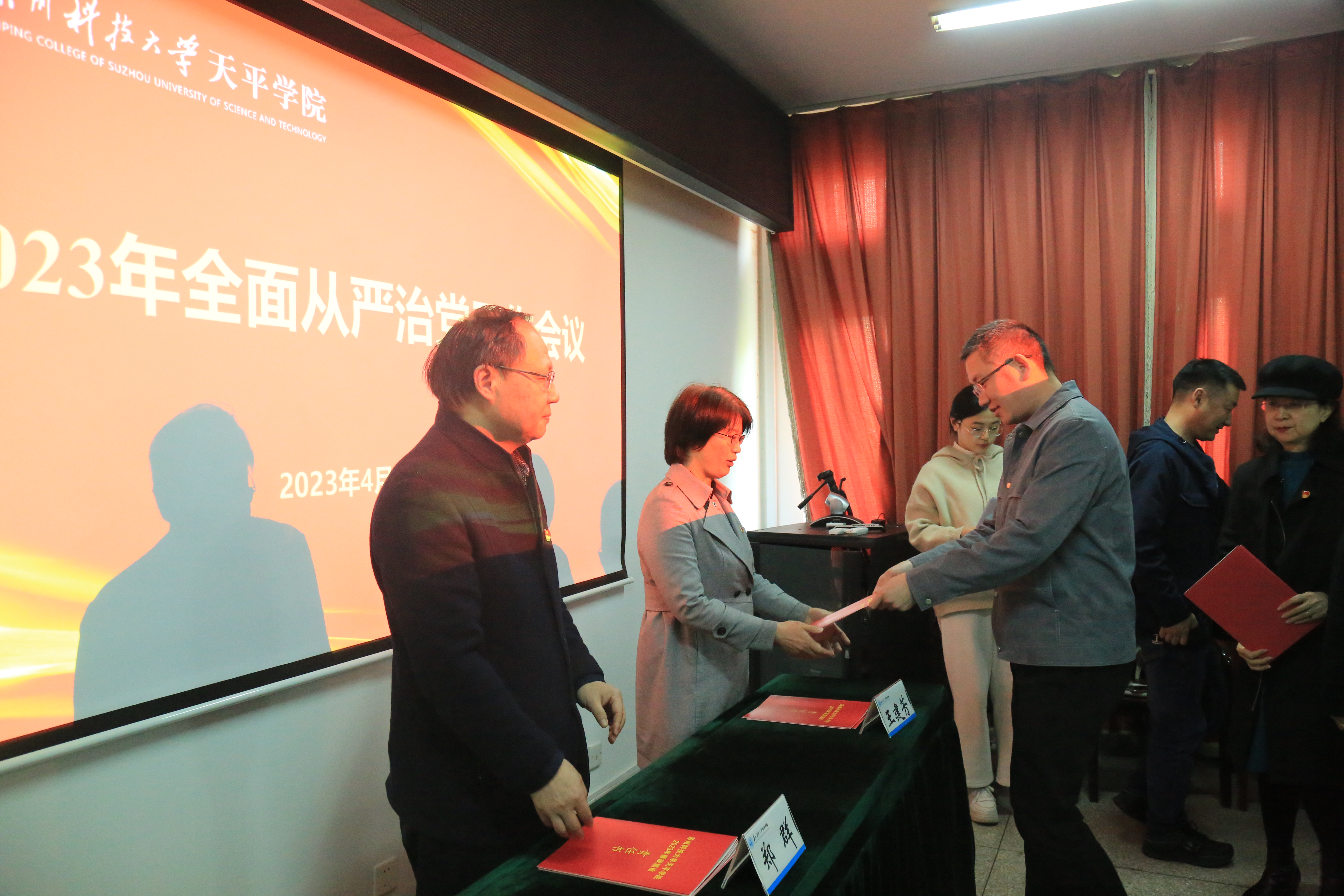 会上,副职院领导、机关部门、教学单位及相关党组织负责人依次向党政主要领导递交了责任书。随后,党委副书记、副院长孙景领学了二十届中央纪委二次全会精神、十四届省纪委三次全会精神,同时传达了学校2023年度全面从严治党工作会议精神。