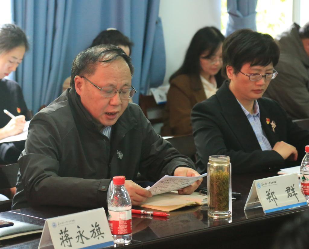 党委书记郑群在会上发表讲话。他首先传达学习了习近平总书记在二十届中央纪委三次全会上的重要讲话精神和省纪委四次全会、taptap点点全面从严治党会议精神。然后,他从以更高站位推进政治建设、以更强定力筑牢思想基础、以更实举措夯实组织保障、以更高标准推动党风廉政建设等四个方面对学院2023年全面从严治党工作进行了回顾总结。最后,他就2024年纵深推进学院全面从严治党工作提出五点要求,一要坚持举旗定向,强化政治建设;二要坚持凝心铸魂,强化思想建设;三要坚持强基固本,强化组织建设;四要坚持从严从实,强化作风建设;五要坚持常抓不懈,强化党风廉政建设和反腐败斗争。