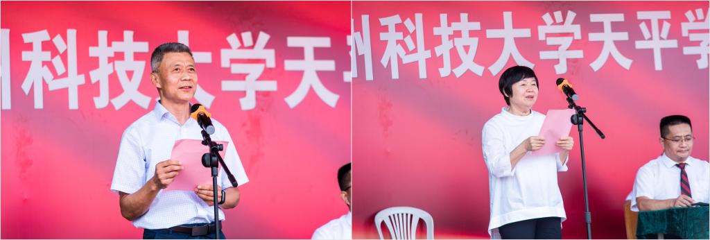开学典礼在庄严的国歌声中拉开序幕。首先,在校生代表、土木工程学院造价1922班张雨辰同学发言,他表达了对学弟、学妹的欢迎,鼓励全体同学寻找梦想并为之奋斗,实现人生价值。新生代表、语言文化学院英语2222班王璐发言,她表示进入大学后,要学会更科学的支配时间,让四年大学生活更丰富、充实、美好。智能制造学院李江澜老师代表全体教师发言,她勉励新生同学尽快树立目标,适应大学学习方法,加强自主学习能力;同时学会沟通交流,建立良好人际关系。