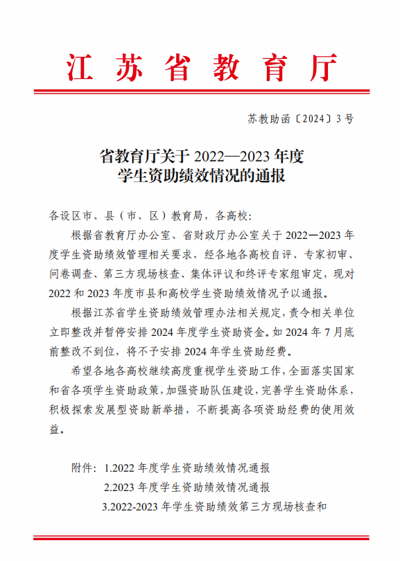 近日,江苏省教育厅发布《关于2022—2023年度学生资助绩效情况的通报》(苏教助函[2024]3号),经各高校自评、专家初审、问卷调查、第三方现场核查、集体评议和终评专家组审定,taptap2023年度学生资助绩效考核获评“优秀”等次。