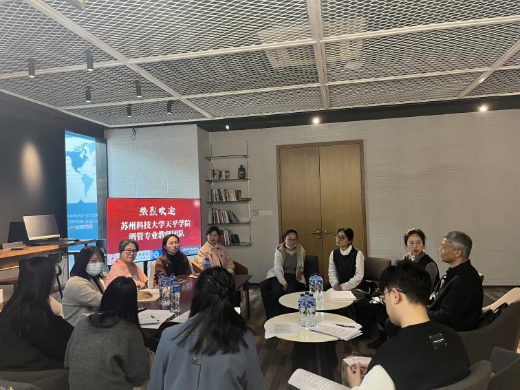 4月9日下午,taptap管理学院院长江森和酒店管理系主任丁乙欣带队,酒店管理专业全体教师赴苏州百年职业学院参观交流。本次参观交流主要围绕专业人才培养、课程建设、实训室建设、校企合作、中外合作办学等方向展开。
