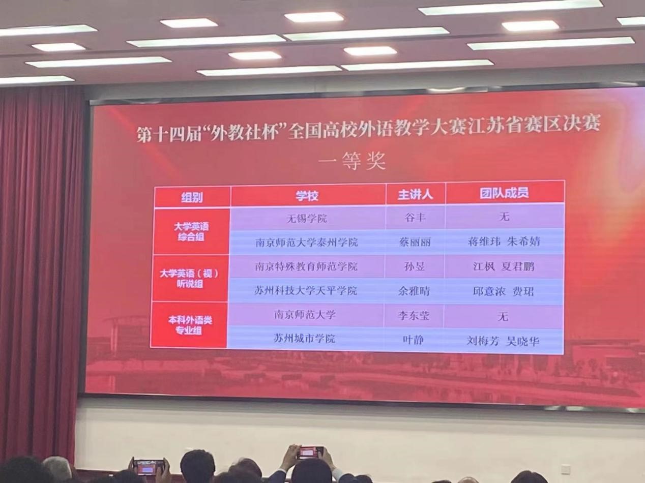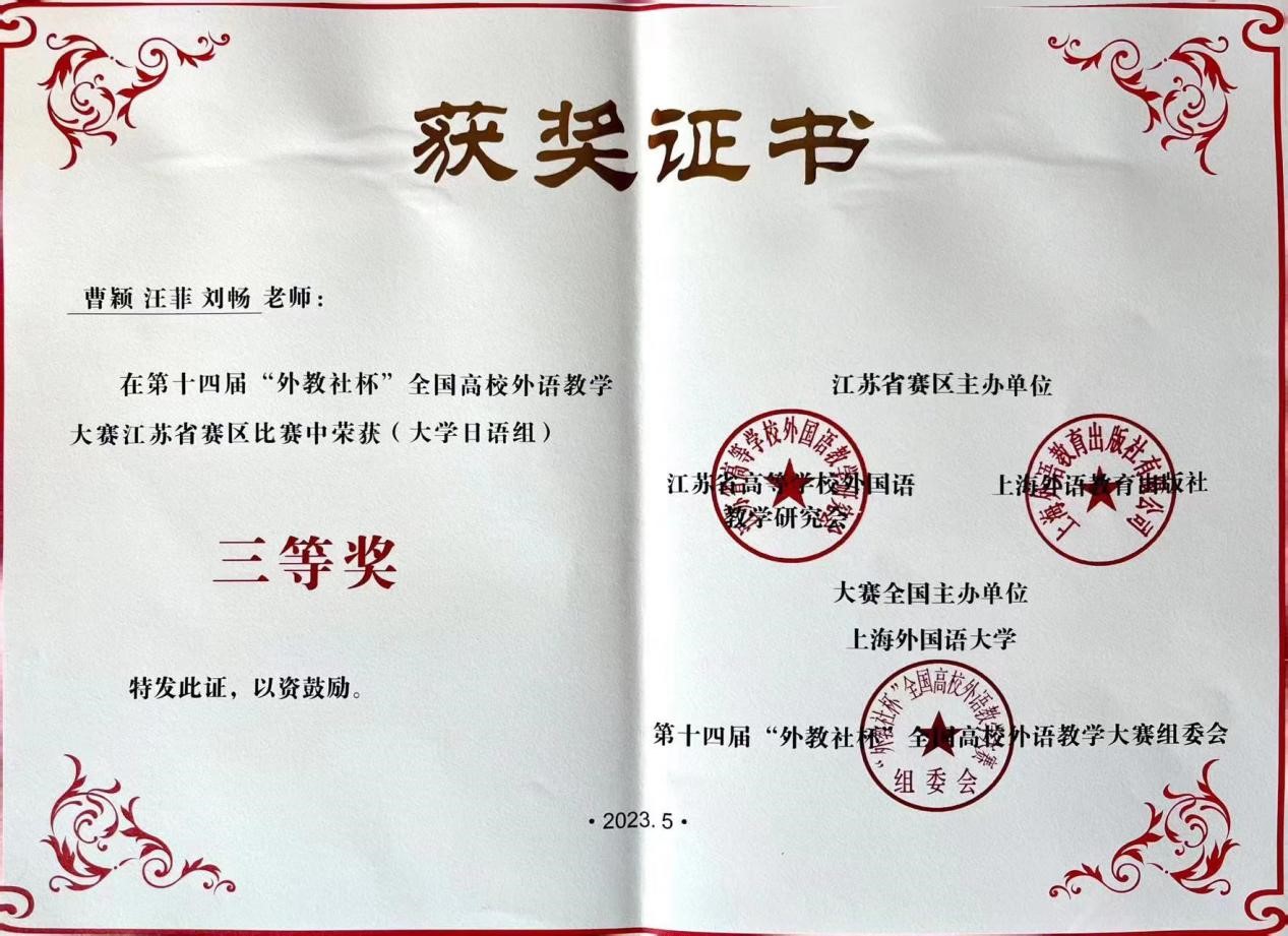 2023年5月12日至5月13日,第十四届“外教社杯”全国高校外语教学大赛江苏省赛在宿迁学院举行。taptap语言文化学院英语系教师余雅晴、邱意浓、费珺获大学英语(视)听说组一等奖,日语系教师曹颖、汪菲、刘畅获大学日语组三等奖。