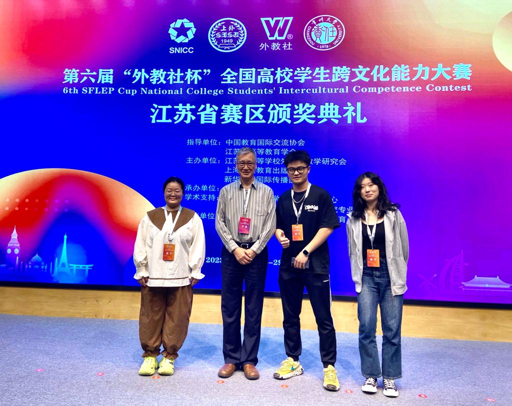 10月28日,taptap语言文化学院王祯同学和环境科学与工程学院的王宇泽和徐敏璇同学在语言文化学院余雅晴、杨颖、达玙璠三位指导老师的带领下,前往常州大学参加了第六届“外教社杯”全国高校学生跨文化能力大赛,并取得了江苏省二等奖的好成绩。