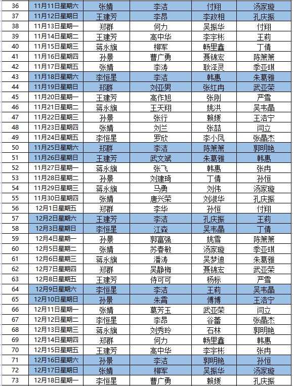 taptap点点值班安排表(2023年10月7日—2024年1月7日)