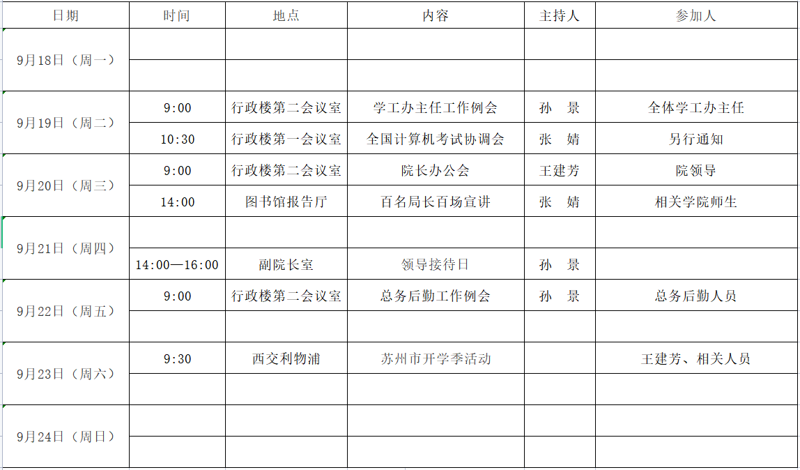 第 四 周活动安排表( 2023年 9月 18日 - 2023年 9月 24日 )