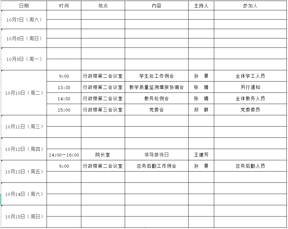 第 七 周活动安排表( 2023年 10月 7日 - 2023年 10月 14日 )