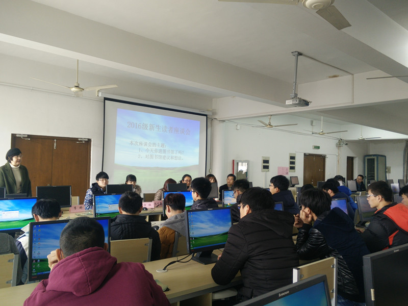 12月14日下午,天平学院图书馆读者座谈会在图书馆电子阅览 室召开。馆长刘兰,图书馆各部门老师,外语系李娇老师,天平学院读者交流中心副会长方欣及16级道桥专业80多人参加此次座谈会。 本次座谈会围绕“今天你进图书馆了吗”与“对图书馆的建议和想法”两大主题而展开。 会上,刘兰馆长就举办本次座谈会的目的做了简要介绍,并欢迎读者们对图书馆的管理、服务工作中存在的问题提出意见和建议,共促图书馆的建设和发展。技术部石林林老师就图书馆网站的各功能各数据库,微信图书馆进行了详细的阐述。李娇老师分享自己多年在图书馆学习的宝贵经验,流通部史源老师就16级道桥专业的借阅量与读者们进行了互动交流。副会长方欣全方位介绍了天平学院读者交流中心,希望广大读者都能积极加入,共同读书读好书。