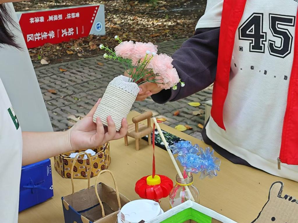 活动现场,来自院青协志愿者们纷纷亮出自己的“变废为宝”作品。这些作品不仅造型独特、创意十足,而且实用性强,让人眼前一亮。有的同学用废弃的纸张制作成了漂亮的纸质花盆,不仅美化了环境,还充分利用了废弃资源;还有的同学用奶茶包装袋制作抽纸盒,既环保又有创意。