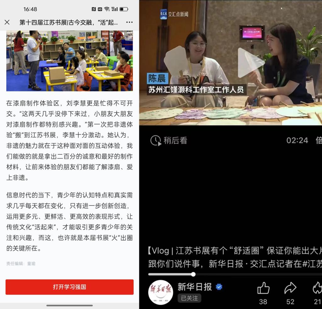在非遗守护中践行青年责任。扬州非遗民间艺术探寻团队前往扬州探寻扬州民间艺术剪纸、通草花,木偶戏的悠久发展,队员们去往扬州珍宝馆,采访了非遗传承人戴春富及其徒弟殷爱玉,了解通草花的制作流程,沉浸式地感受了通草花的制作手艺;跟随推介官来到了扬州木偶研究所,感受木偶剧团日常工作包括基本功训练、剧目节目的排练、演出;来到珍宝馆,拜访扬州市工艺美术大师张震梅,充分感受民间艺术的美妙。此次实践,我们深入地走访、探寻非遗民间艺术,得到名城扬州栏目报道。
