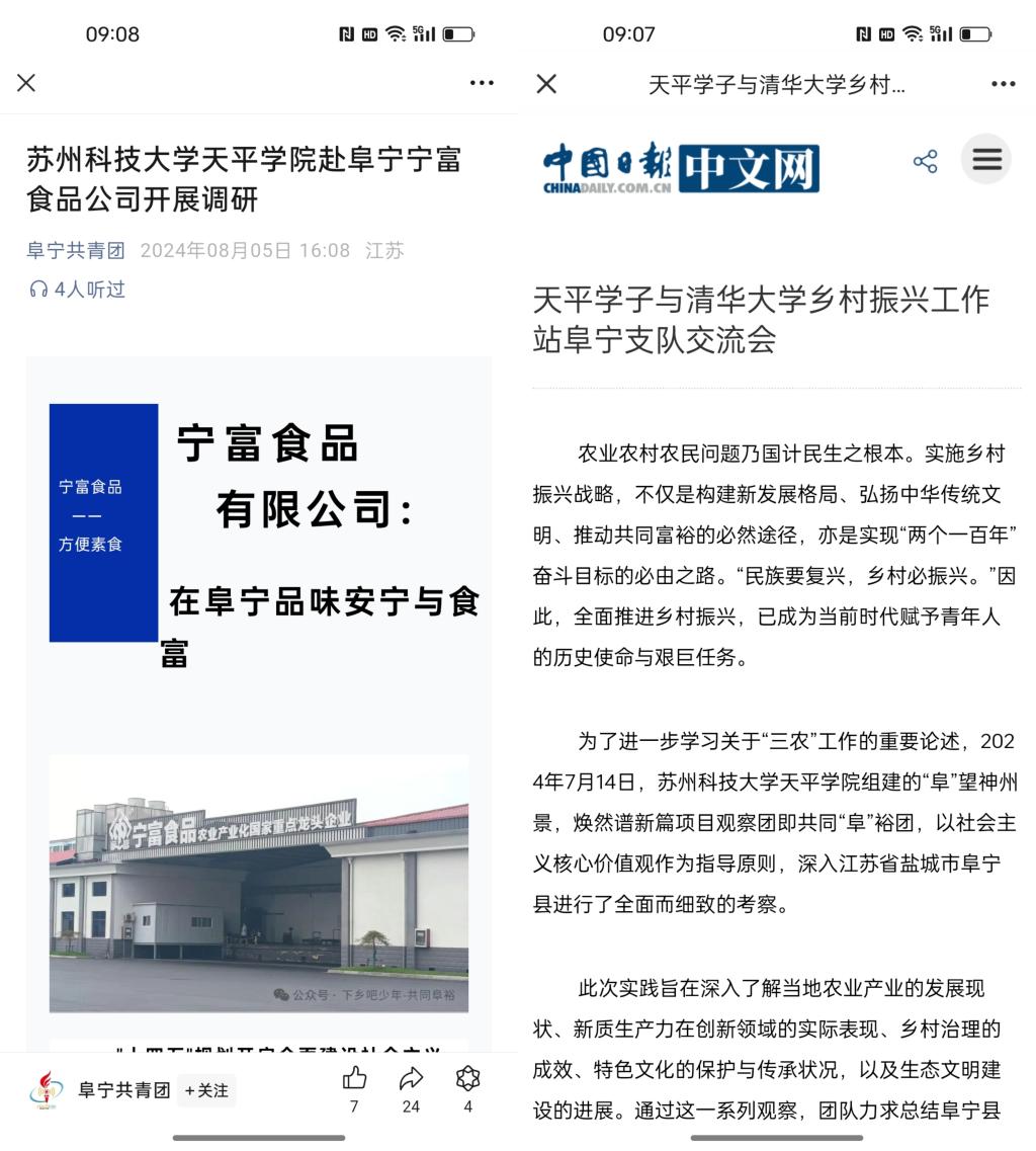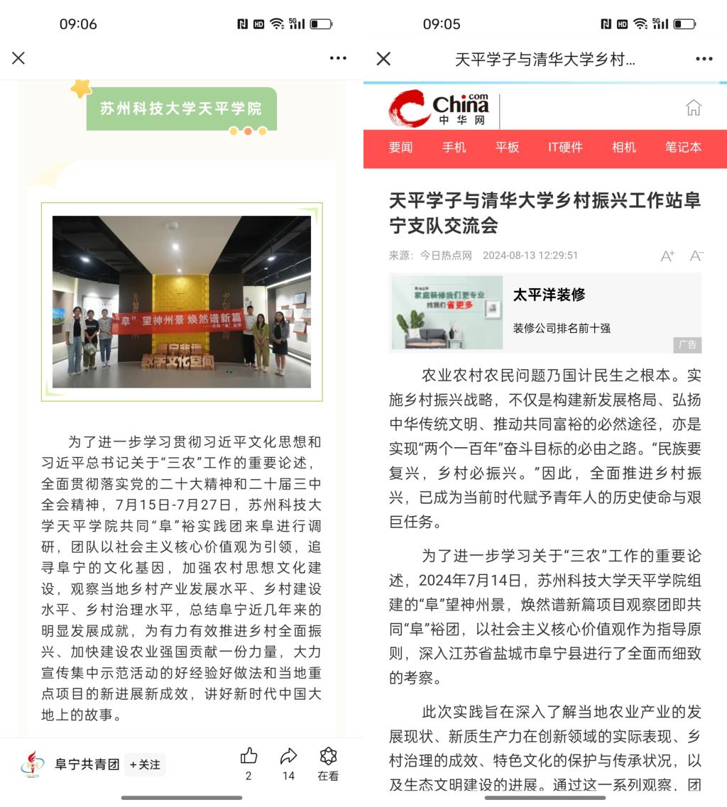 在乡村振兴中探索发展之路。“共同‘阜’裕”实践团队以taptap乡村振兴计划校地对接单位盐城市阜宁县作为实践地点,系统地整理了阜宁地区“三农”问题、经济发展、文化传承、生态保护四个方面的发展成果,并分别选取了各个领域极具代表性的企业、地方、人物进行细致地交流与学习。此外,团队成员发挥各自特长,为阜宁团县委设计了IP形象、《阜青水秀》环保宣传手册等文创产品,助力提升阜宁县的知名度。实践结束之际,团队与清华大学乡村振兴工作站赴江苏阜宁支队开展交流会议,双方就各自在实地调研中积累的经验进行了广泛探讨,并就阜宁未来发展规划的见解与行动策略,交换了彼此的观点与建议,为阜宁的未来发展贡献青年大学生的智慧与力量。