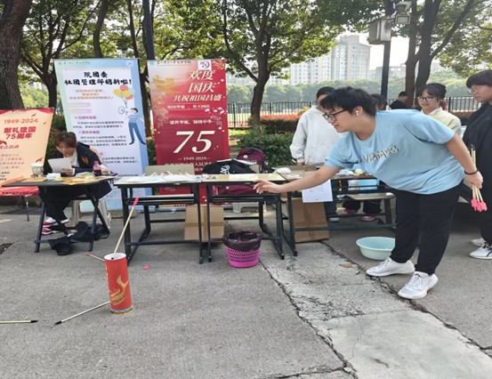 2024 年10月9日,环境科学工程学院在taptap点点超市对面的举办了一场精彩纷呈的国庆活动。活动现场,人潮如涌,热闹非凡。欢声笑语此起彼伏,共同奏响了一曲激昂欢快的国庆乐章。