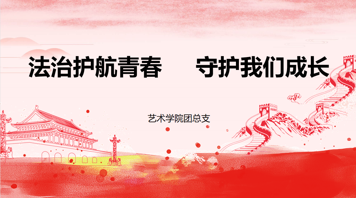 为深入学习贯彻习近平法治思想,增强同学们的法治意识和安全意识,艺术学院结合实际,于2022年5月11日在线上开展了以“法治护航青春,守护我们成长”为主题的团日活动。