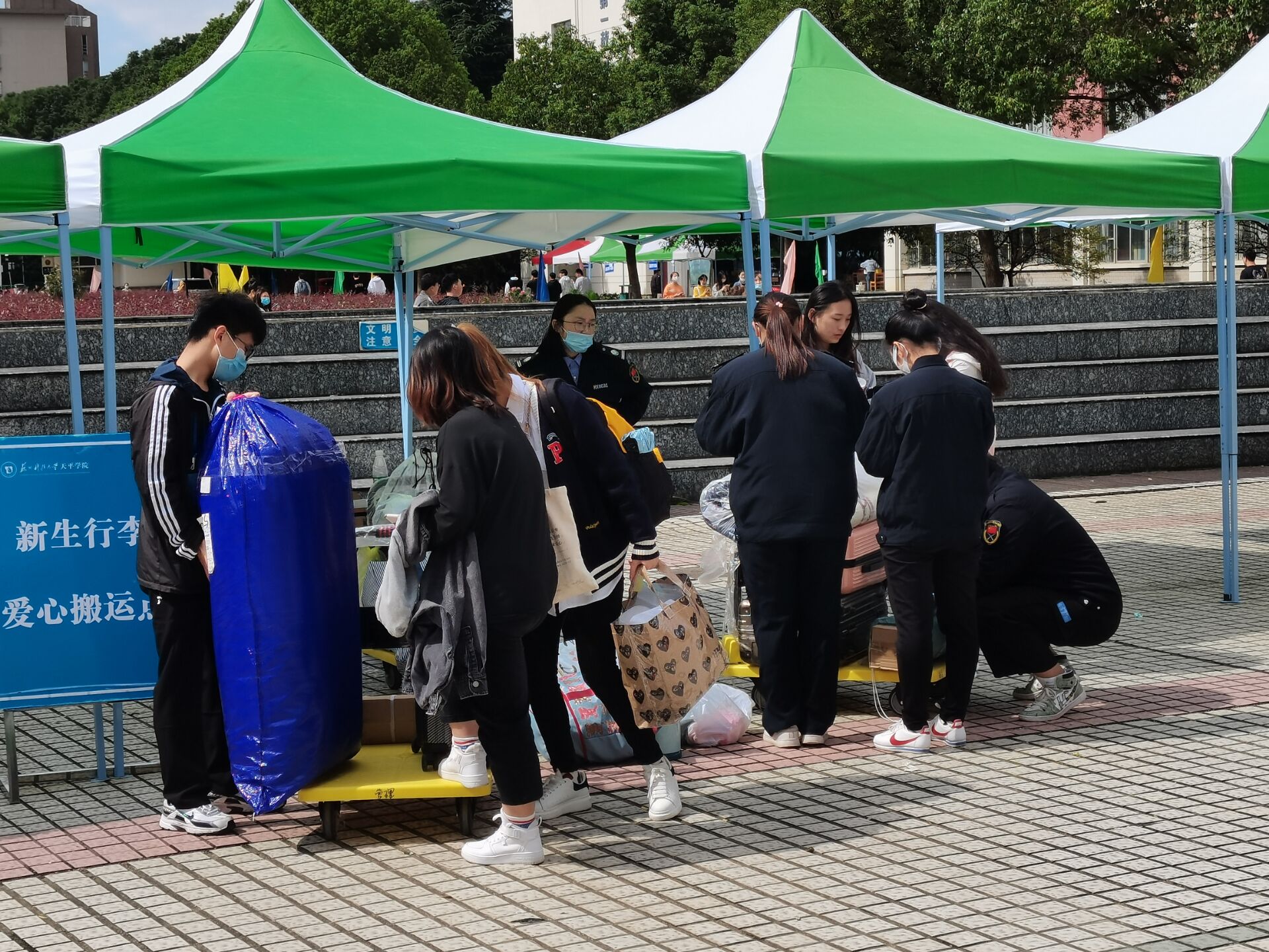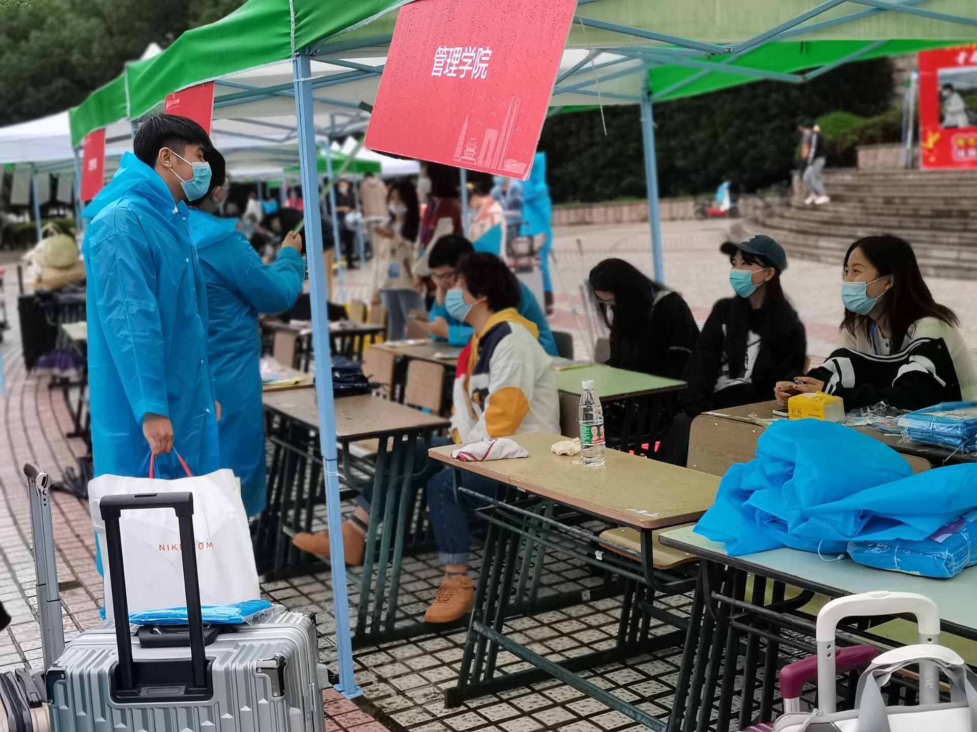为了营造健康安全的良好环境,全校上下高度重视开学疫情防控工作。我校积极响应国家全民战疫号召,此次开学相比以往增加了许多看似繁琐实则必要的安保措施。开学当天,虽然苏州一直乌云密布,一早就淅淅沥沥地下起了小雨,但是我校参与迎新活动的志愿者们一早就穿着雨衣等在了学校门口、签到处及宿舍楼下。从新生进校门的那一刻开始,志愿者们就再也没有休息过,他们有条不紊地帮忙搬运行李、带着新生去签到处报到、领着新生熟悉校园。新生一个接着一个地进来,他们在校园里跑了一个又一个的来回,雨水与汗水交杂着落在了他们的身上,却没有一个人发出抱怨。一直到所有新生完成报到注册,他们才得以休息。各项工作的有序开展确保了21级新生的顺利报到,同时也代表着本次迎新活动取得了圆满成功。