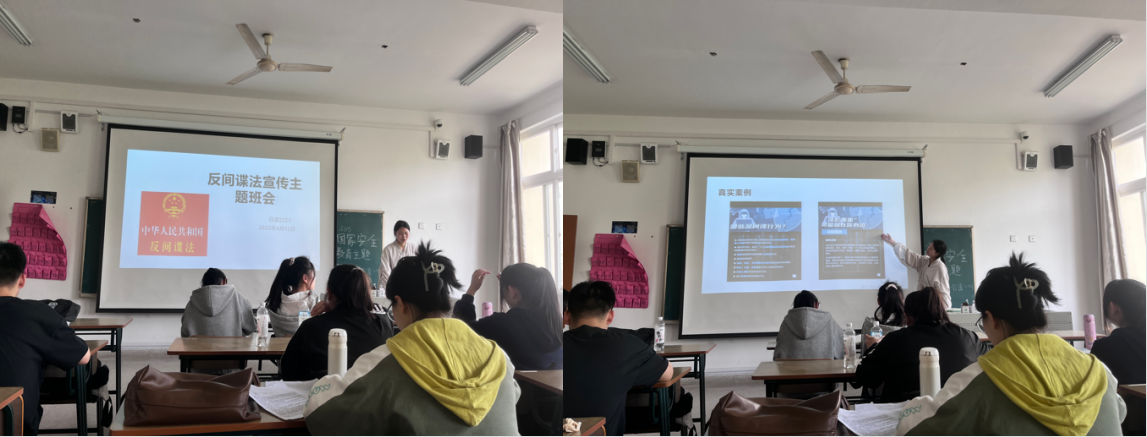 主题班会上,各班团支书组织观看宣传片,推进反奸防谍宣传教育,有针对性地开展警示教育、法治教育、安全防范教育,切实筑牢维护国家安全的思想防线。强化《反间谍法》《规定》《办法》普法宣传,重点加强对《反间谍法》《规定》《办法》普法宣传,组织观看了相关普法宣传片和警示片,推动广大师生形成维护国家安全的普遍共识。