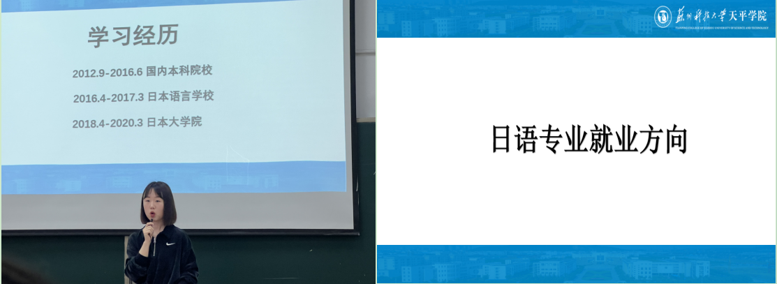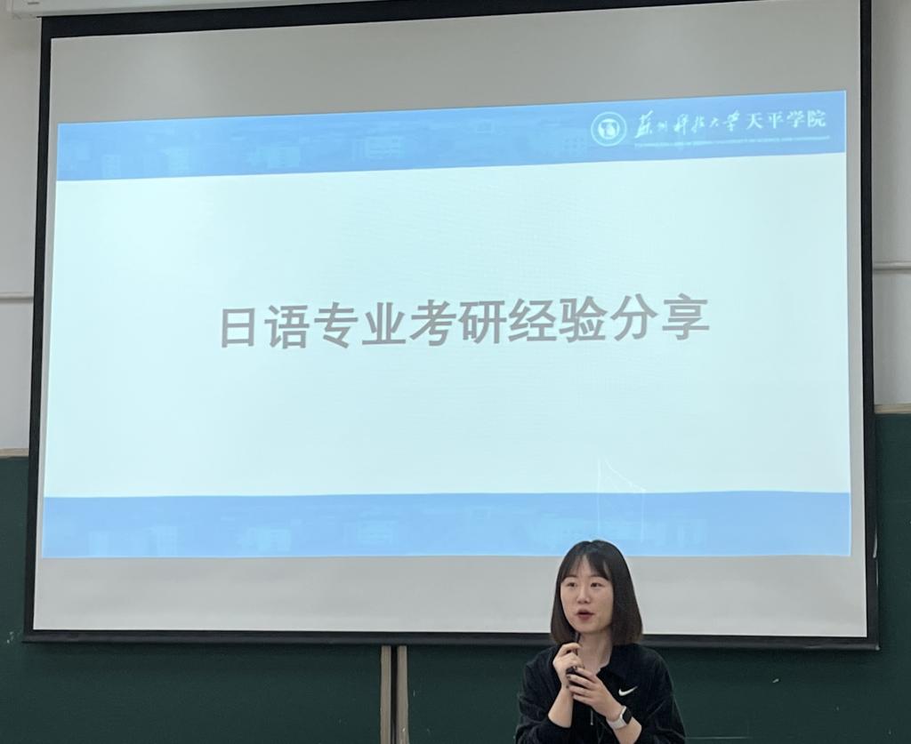郭老师结合taptap学生特点及自身经历,首先从日语专业学习分析入手。她指出大学本科时期是打牢专业基础的重要时期,学生应做到合理的时间分配——把握住早自习时间,珍惜默写、朗诵机会,语言学习的记忆背诵至关重要;找到适宜自己的学习方法。其中,她在“培养主动学习的好习惯”这一点上,作出了特别强调;确立不同阶段的学习目标——积极规划日语、英语考级的复习、刷题等相关事宜。