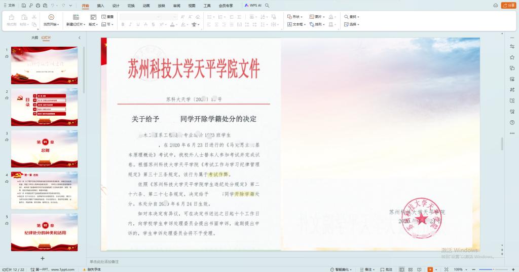 首先本支部党员老师带领学生党员和本次的发展对象们深入学习《学生手册违纪处分规定》,归纳重点,同时收集近年来的处分文件作为警示材料,形成宣讲文档。然后支部学生党员代表对2023级所有班级进行一对一的宣传,明确学生学习规范和奖惩机制,严肃考风考纪,以案例作为警示深入剖析,督促同学们把心思用在正途上,形成优良学风。