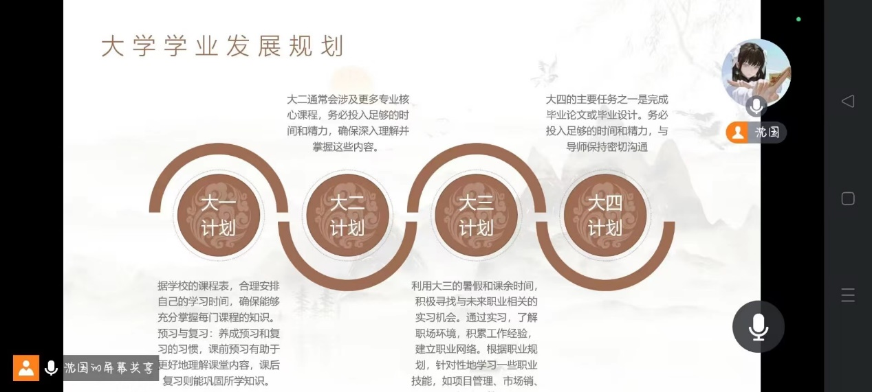 沈国同学重点强调了大学期间的学习目标设定和自主学习计划的重要性,他表示:“在大学期间,我们不仅要学好专业知识,更要学会如何规划自己的时间和未来。”
