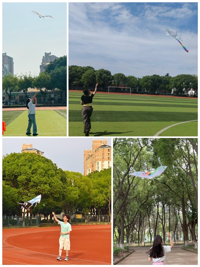 风筝放飞环节将活动推向高潮。同学们分组协作,共同将自己的作品送上蓝天。2024级张同学分享道:“看着自己绘制的风筝翱翔蓝天,突然觉得压力减轻了很多,这种体验很治愈。”在欢声笑语中,大家不仅体验了团队合作的乐趣,还通过互动交流增强了彼此的情感联结。活动充分体现了“以劳健心、以美润心”的宗旨,让参与者在轻松愉快的氛围中感受到集体的温暖与支持,构建起朋辈支持网络。