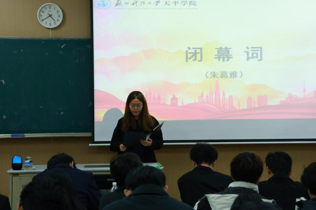大会最后一项议程,由土木学院朱葛雅老师发表闭幕词。她首先对大会的圆满成功和新当选的新一届党总支委员会委员表示祝贺,向全体代表及为大会顺利召开付出辛勤努力的工作人员表示感谢。她指出,本次大会是一次凝聚共识、团结奋进的大会,也是一次继往开来、谋划发展的大会。新一届党总支委员会将以此次大会为契机,深入学习贯彻习近平新时代中国特色社会主义思想,全面落实党的教育方针,坚守为党育人、为国育才初心使命,聚焦党建引领、学科建设、人才培养、服务师生等重点工作,不断增强基层党组织的凝聚力、战斗力和创造力。最后大会在庄严的歌声中胜利闭幕。