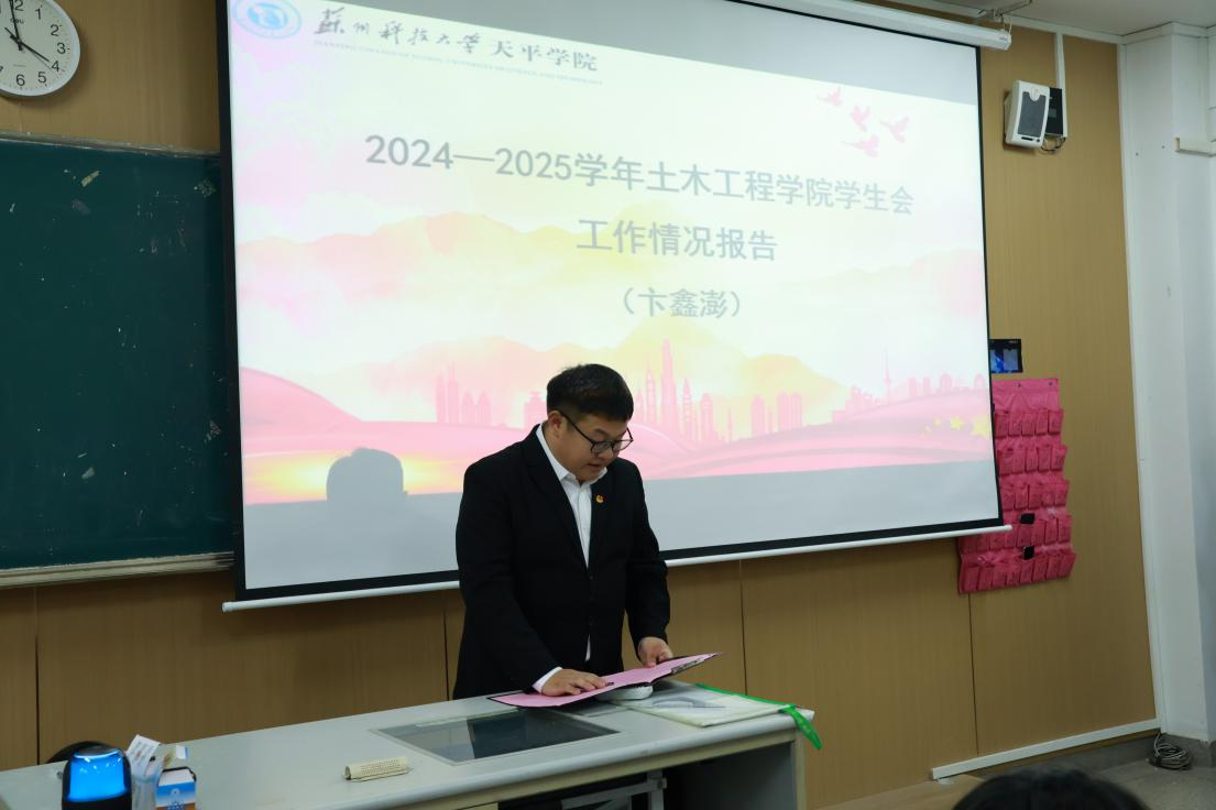 大会第三项议程。由学生会主席卞鑫澎同学代表学生会作工作报告,系统回顾了过去一段时间的工作成效。报告指出,学生会始终以“服务同学、凝聚青春力量”为宗旨,聚焦学风建设、文体活动、权益服务三大核心任务。在学风建设方面,组织“土木学术论坛”“考研经验分享会”等活动20余场,助力营造优良学风;文体活动板块,成功举办院运会、“土木文化节”等特色活动,丰富师生课余生活,增强集体凝聚力。报告还明确了未来工作方向,将进一步深化组织改革,提升服务精准度,打造更具影响力的学生活动品牌。学院青年志愿者协会负责人以“践行志愿精神,彰显土木担当”为题作工作汇报。青协始终秉持“奉献、友爱、互助、进步”的志愿宗旨,开展志愿服务。