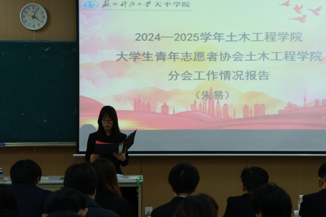 大会第四项议程,由大学生青年志愿者协会主席朱易同学作工作报告。学院青年志愿者协会负责人以“践行志愿精神,彰显土木担当”为题作工作汇报。青协始终秉持“奉献、友爱、互助、进步”的志愿宗旨,全年累计开展多次志愿服务。持续开展迎新引导、校园清洁、考试周秩序维护等常态化志愿活动;社区服务领域,环保宣传等特色项目。报告表示,未来将进一步拓展服务领域,完善志愿者培训体系,推动志愿服务提质增效。