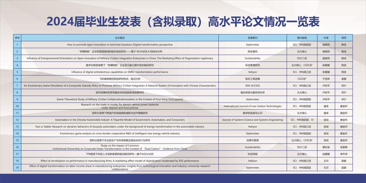 学院工商管理学科近几年在供应链运作管理、战略管理与市场营销、组织行为与人力资源管理、技术经济与财务管理等几个方向形成了自身的鲜明学科特色,近几年更是以低空经济发展为契机,聚焦于低空产业创新、低空场景商业模式创新、低空物流、无人机产业协同创新等方面研究。工商管理学科2017年入选软科中国最好大学学科,进入全国前50%;在2022轮教育部学科评估中保持C类,在省内院校名列前茅学院拥有省级重点新型智库通用航空产业发展研究中心、省级人文社科基地辽宁军民融合发展研究基地辽宁省科技创新智库研究基地,另设有三个研究所,即SGS东北亚物流研究所、辽宁省产业经济研究所和人力资本应用研究所,此外还有中航沈飞民用飞机有限责任公司专业学位研究生联合培养基地1个,工程管理硕士具有IPMP专业资质认证资格。